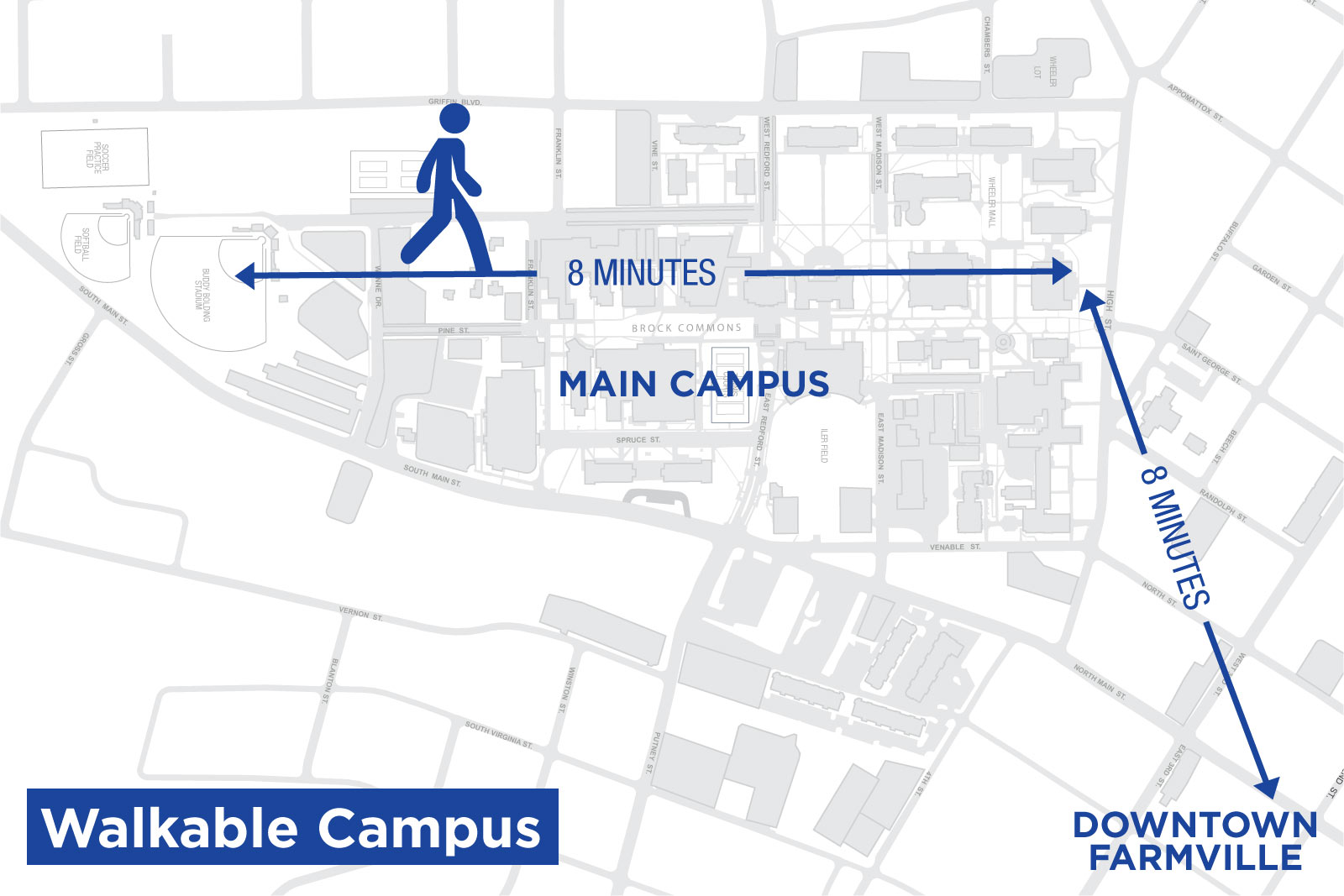Downtown Farmville, just a short walk from main campus, has a quaint college-town feel—yet is always bustling with activity.