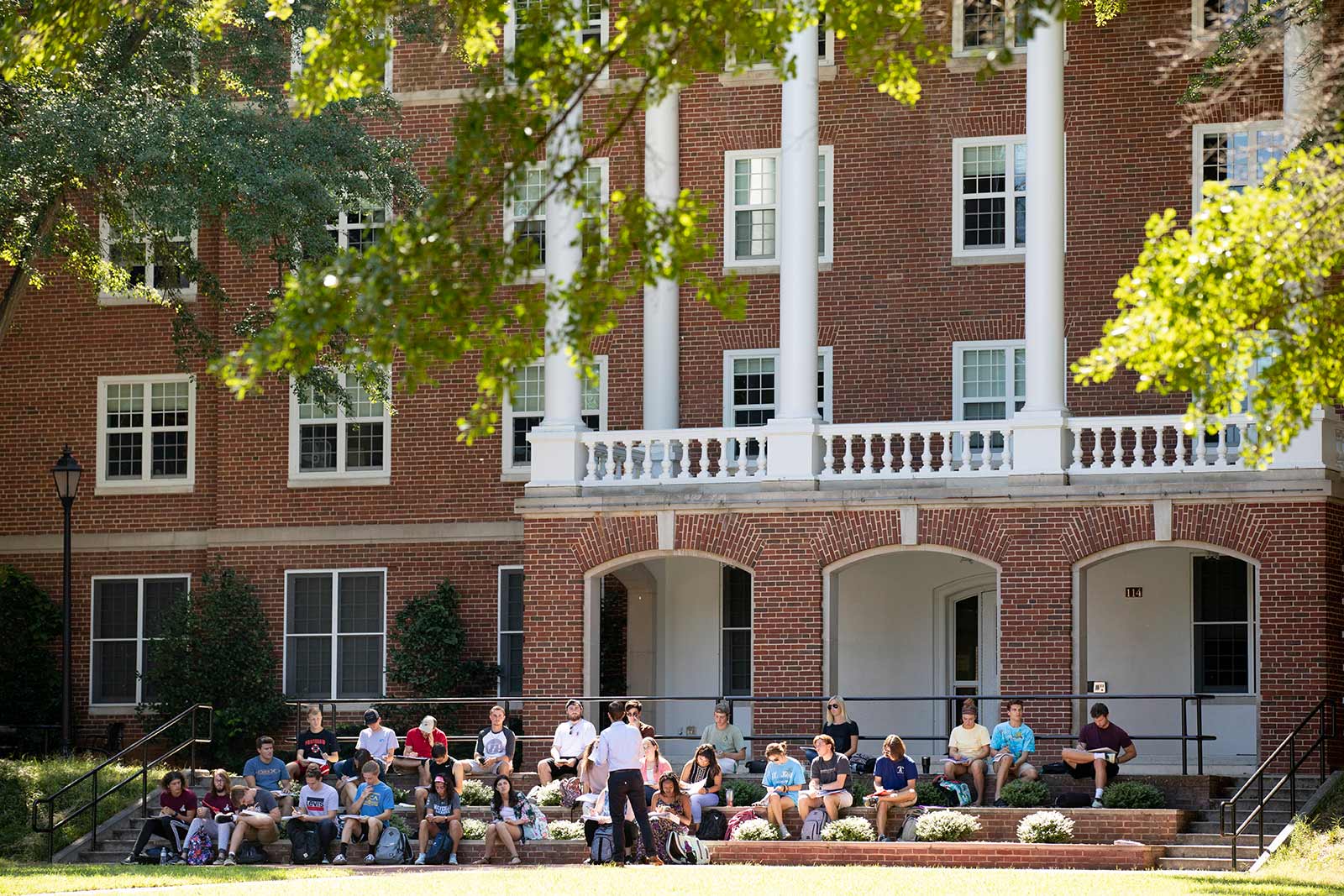 Few faculty members can resist holding classes outside under the giant oaks during perfect spring and fall days.