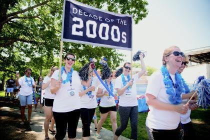 Graduates from the Decade of the 2000s show their Lancer spirit on the way to Iler Field for Alumni Color Wars