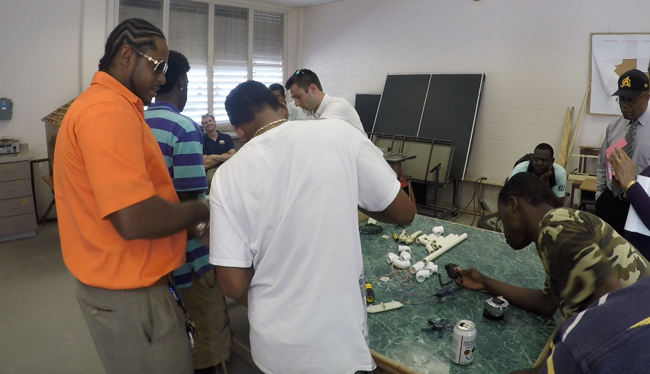 Then-Longwood student Garrett Josemans leads a class on wind turbines at a community college on the island of Grand Turk during a trip to the Caribbean with Dr. Chuck Ross.