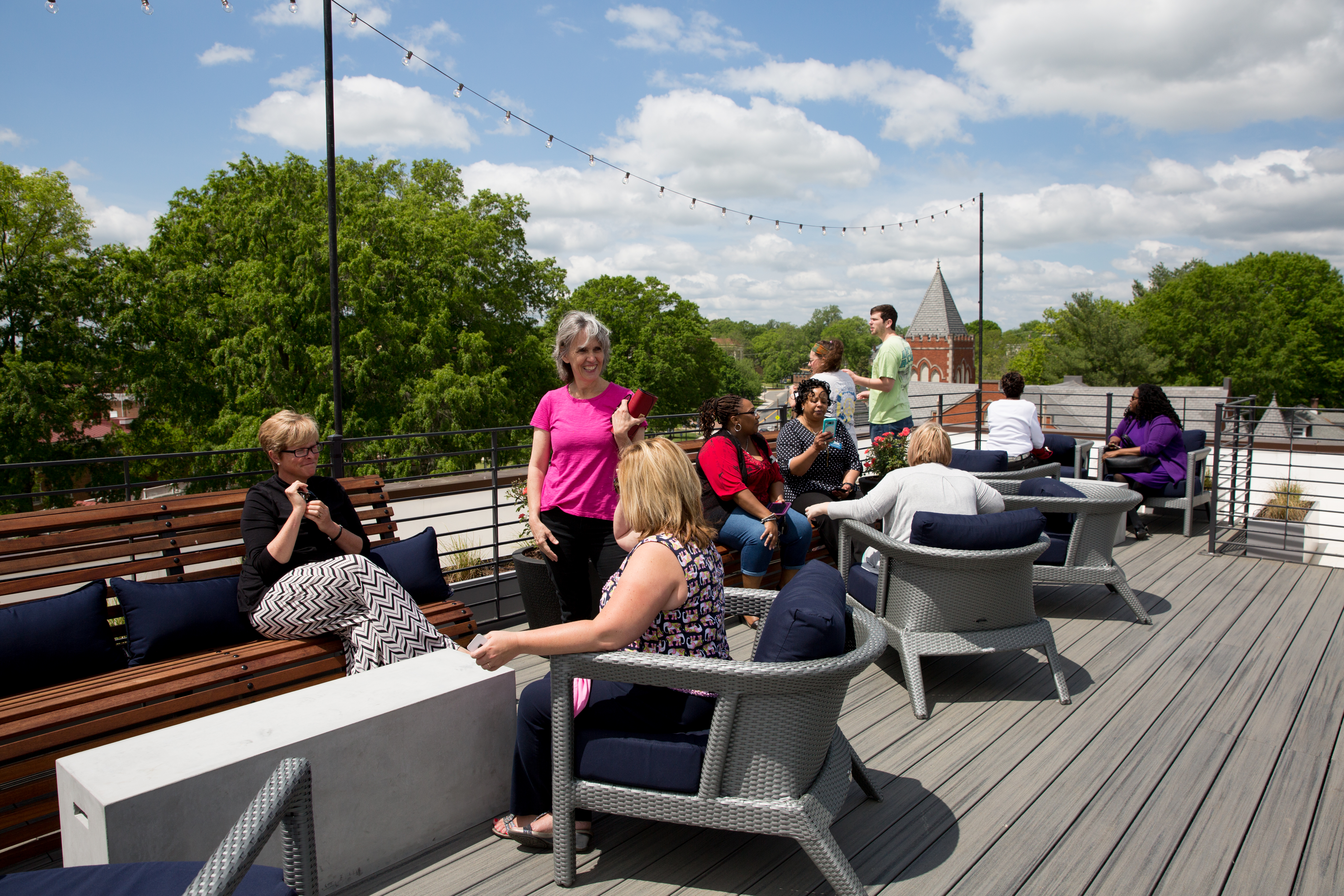 Mayor David Whitus ’83 called the hotel’s restoration “a great milestone” for Farmville and noted that its opening marks several firsts for the town, including the first boutique hotel and first rooftop venue—offering spectacular, panoramic views of the town and Longwood.