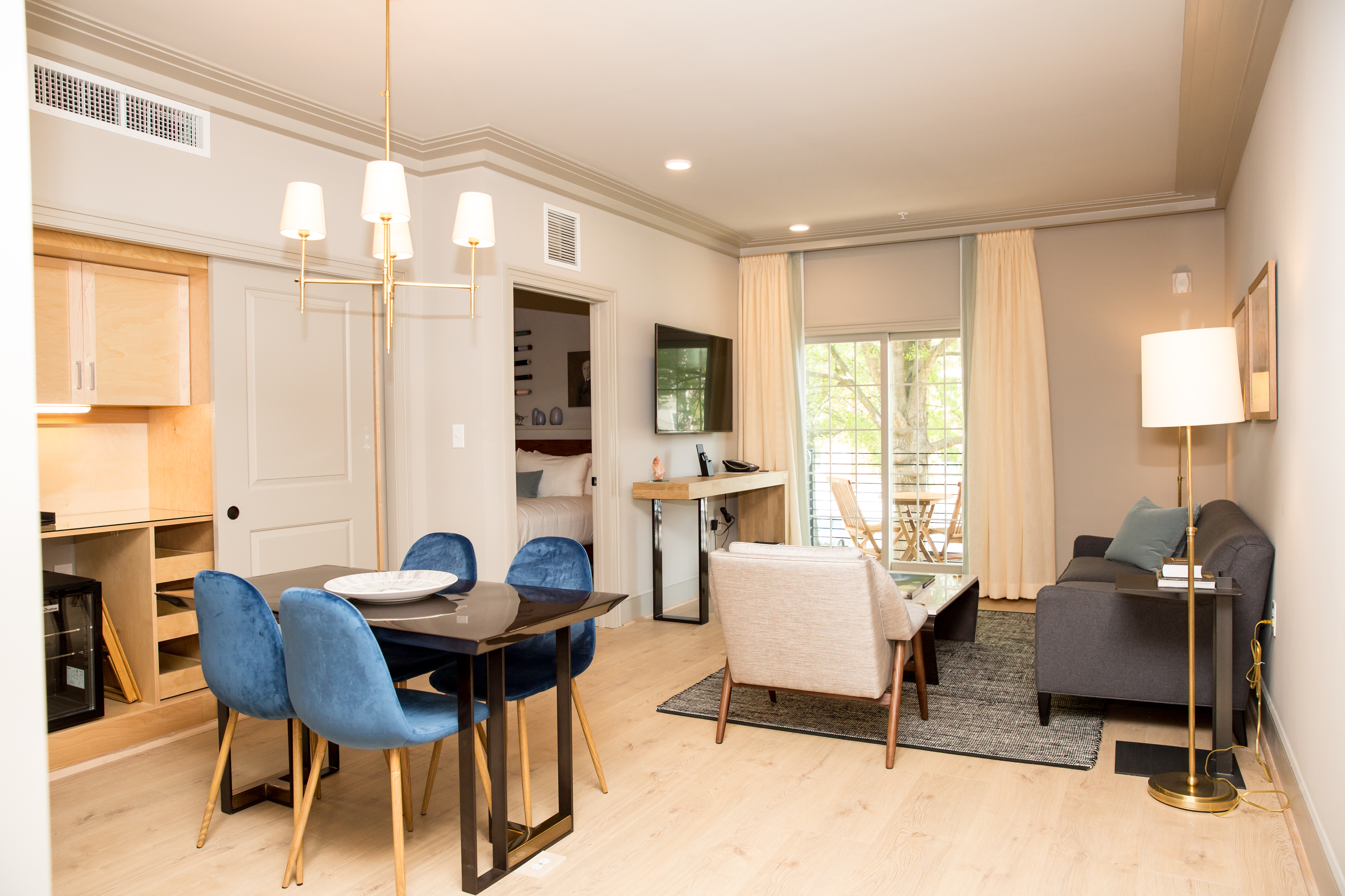 The hotel houses three new restaurants: Sassafras, an upscale coffee and sandwich shop; Effinghams, a coal-fired pizzeria; and Campanga, an Italian restaurant and wine bar open for dinner only. Catbird, the rooftop bar, offers a selection of cocktails, beer and wine, as well as small plates. Menu items from the hotel’s other restaurants can be brought to the rooftop as well.