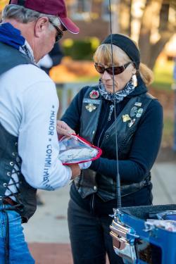 The flag made its way to Longwood just days before Veterans Day, delivered by Mark Kendrick, associate vice president for information technology services, on his blue three-wheeler motorcycle. A veteran who served six years in the Air Force and a member of the Patriot Guard Riders, a group composed mainly of veteran motorcyclists from around the country, Kendrick takes the mission of escorting a flag extraordinarily seriously.
