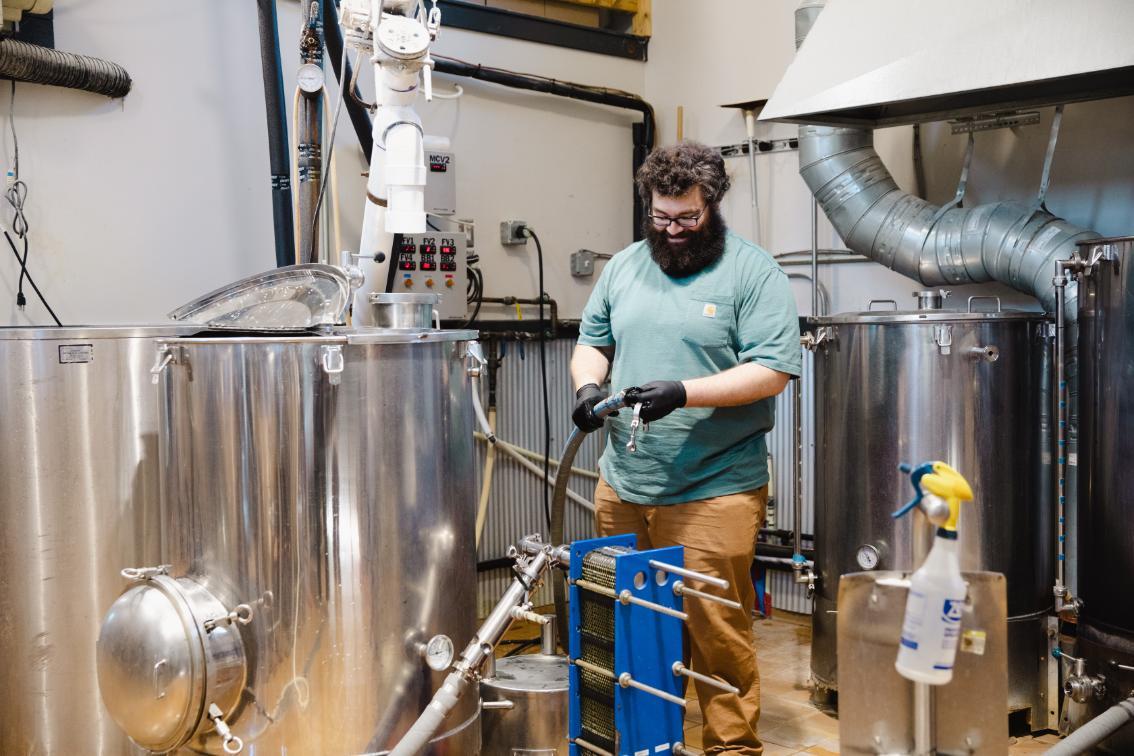He started driving around to breweries, hoping to get his foot in the door. Eventually he got the job at O’Connor Brewing in Norfolk, where he had the chance to apprentice under a brewer with 30 years of experience. Later he went back to school to help him better understand the science involved in the craft.