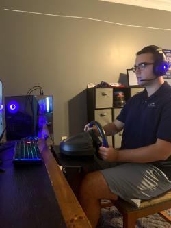 “During the pandemic, my family went down to Charlotte to the NASCAR Hall of Fame,” he said. “They had simulators there that the professional drivers were using, and you could do laps on the courses they were driving that week. I set the 37th fastest lap of the week—faster than some of the professional drivers—and from that point, I was hooked. During the races on television, I kept seeing ads for a College iRacing Circuit, and I knew that wherever I went to college, I wanted to compete on that level.”