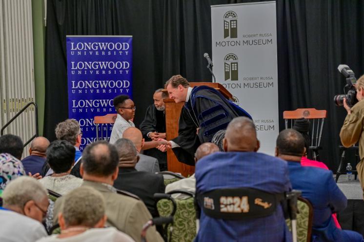 Reveley acknowledged the history of those in the audience had intersected with Longwood’s history in challenging and sometimes painful ways. In 2014, Longwood’s Board of Visitors apologized for the university’s actions and inactions during the civil rights era, and launched a partnership “in perpetuity” with the Moton Museum to help advance understanding of Virginia’s civil rights history and expand opportunity in education.