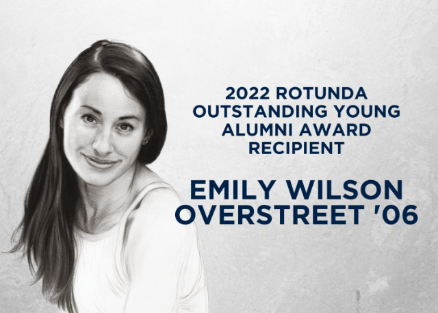 Congratulations to Emily Wilson Overstreet, recipient of a 2022 Rotunda Outstanding Young Alumni Award!