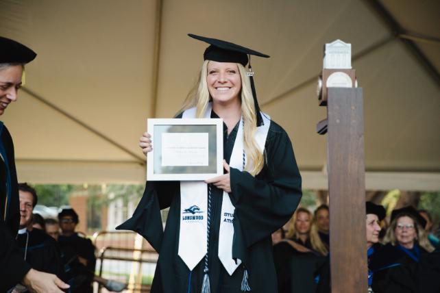 “Receiving the Graduate Leadership Award affirmed that the work I was doing by balancing leadership, service, athletics, and graduate study mattered. It wasn’t just recognition; it was encouragement to keep showing up, leading with purpose, and giving back to the Longwood community that shaped me.