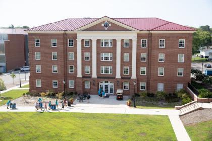 Located less than a mile from campus, Lancer Park houses upperclassmen in one of Longwood's apartment communities. It features the POD Market, which provides grab-and-go food and drinks, a large meeting room, gaming area, and fitness center.