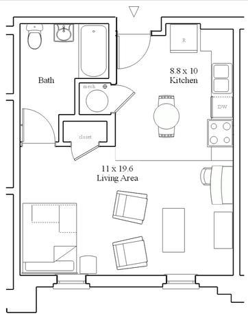 Larger version of Lancer Park North/South One Bedroom Apartment Floor Plan (pdf)