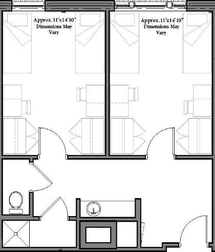 Double Suites consist of 2 rooms within the same suite. Each room will share the bathroom within the suite.