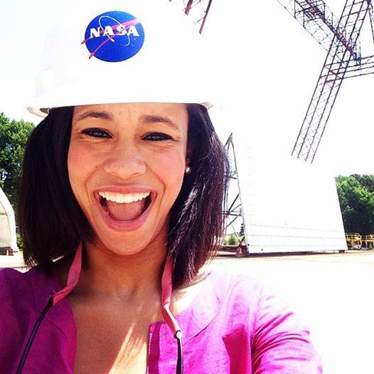 “Me at the Gantry at NASA Langley Research Center for my summer internship! The Gantry is an important NASA Landmark and for the world, because it is where they trained the first ever astronauts to go to the moon! Also they crash test things like NASCAR’s, Air Force Planes, and the new Mars Mission Orion Space Capsule for 2034! It’s 250 feet high and we have to be super official in our hard hats to even go under! #LUTakeASelfie”