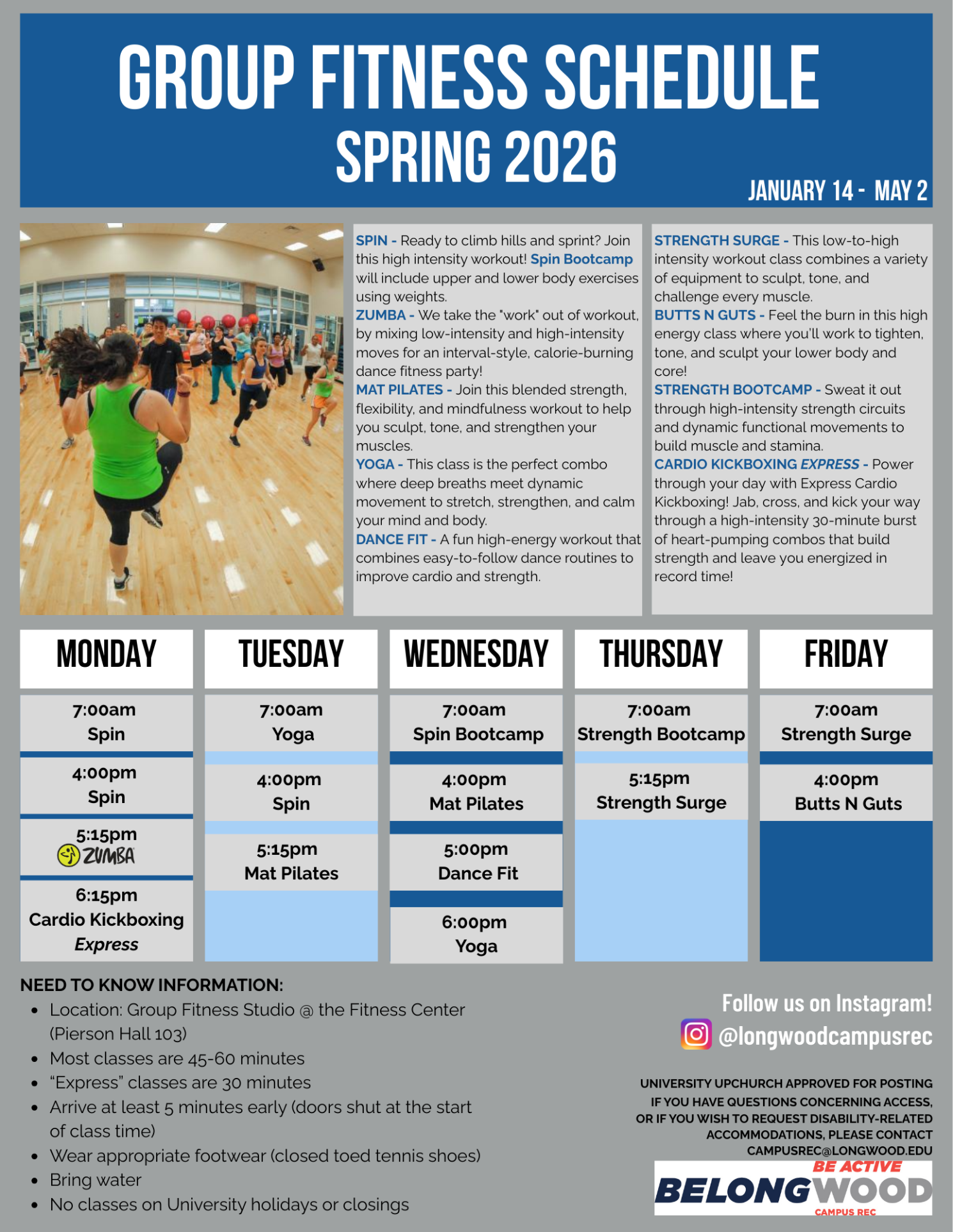 Spring 2026 Group Fitness Schedule