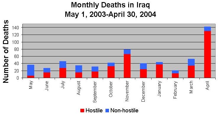 Figure for all casualties, as of 4/29/2004 4:00pm ESTSources: