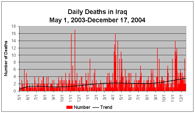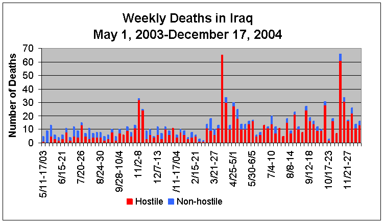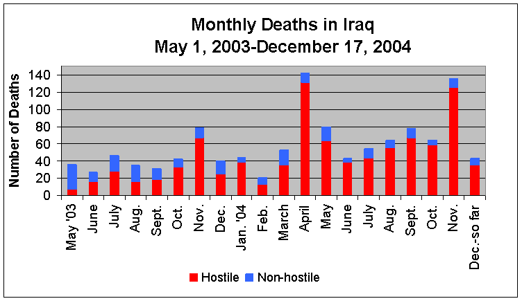 as of December 18, 2004Killed - 1,158 (8.27/1,000 troops)