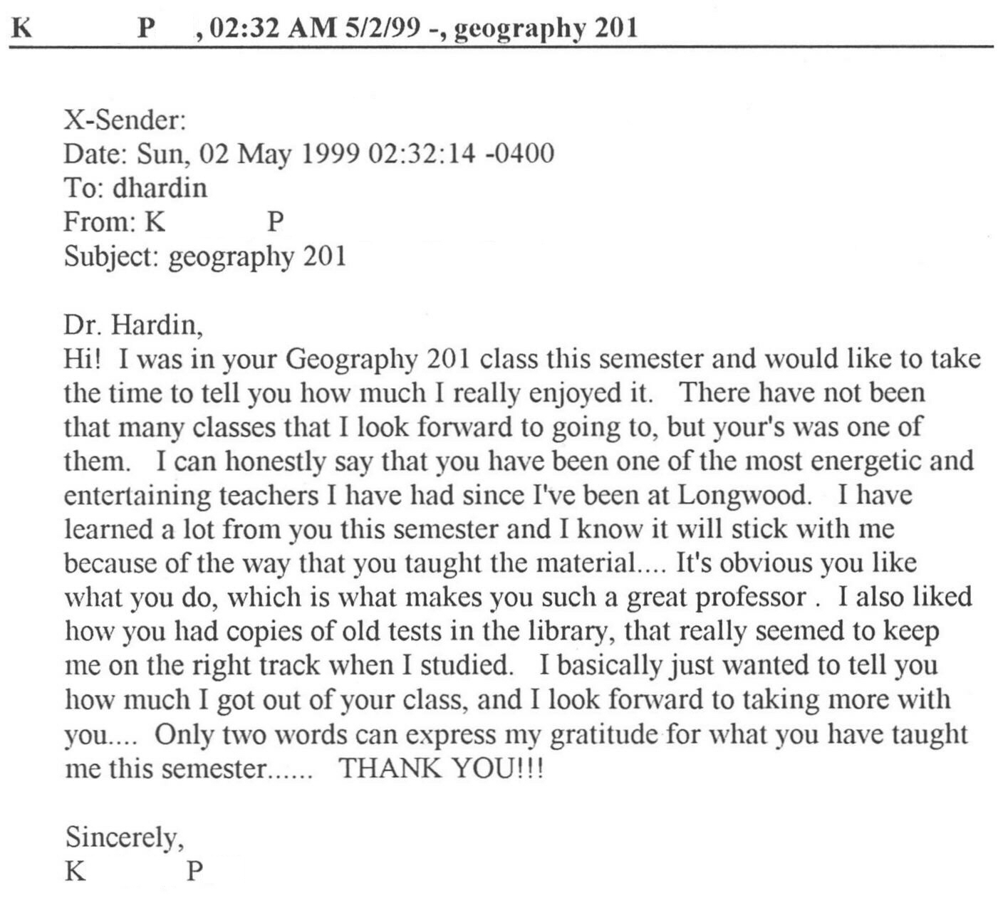 Geography classes in 1997. This is not the worst message I've ever been sent, but what bothers me about this note is not its content (more about that later), but rather the level of ignorance and lack of attention that it displays. My goal is to challenge students to THINK, something too few of us do, much less in regard to religion. It is rarely my intention to offend, although it happens. To be charitable, religion is a touchy subject; I’m gratefiul the student’s fury was dispensed with a pen rather than a sword. Yet, if any set of religious beliefs cannot withstand simple questions, then of what value is it? In any event, this is a good object lesson for students in paying attention and thinking things through. It also serves as fair warning to anyone thinking about teaching of what students can get wrong and therefore what might be relayed to their parents.