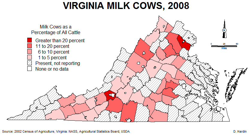 Virginia Milk Cows, 2008 - Map of milk cows as a percentage of all cattle