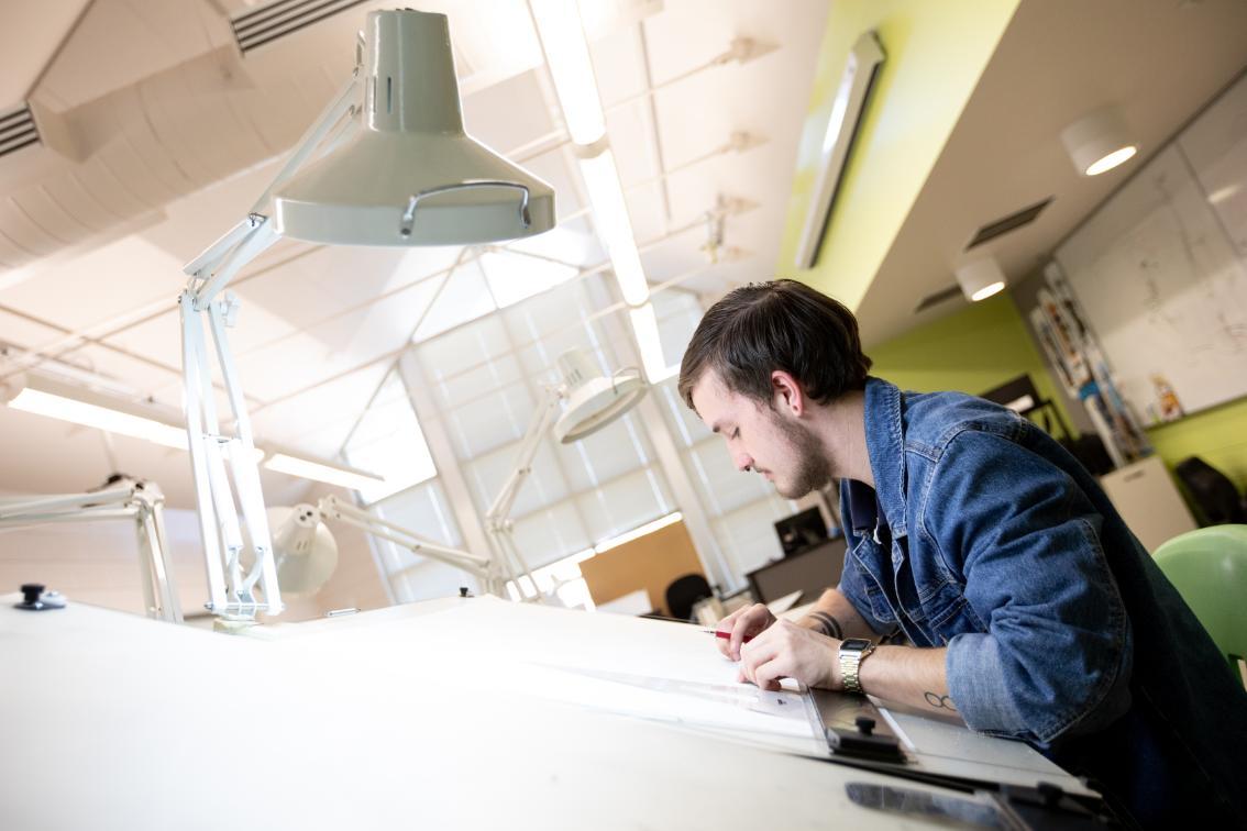 The Design/Drafting Studio is a dedicated working space for Theatre Design & Technology students, designed to support both traditional and digital design work.