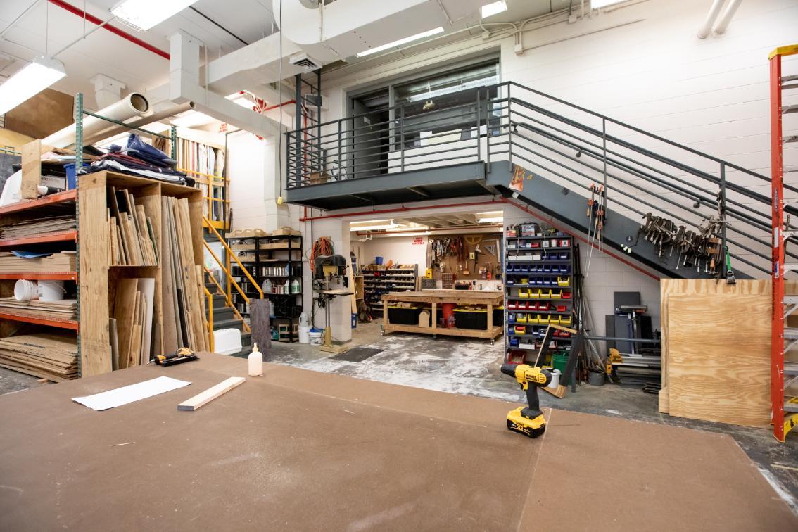 The Scene Shop is where much of the behind-the-scenes magic of theatrical production comes to life. Spanning 2,000 sq ft, it supports scenic construction, prop building, painting, and 3D fabrication for both productions and coursework.