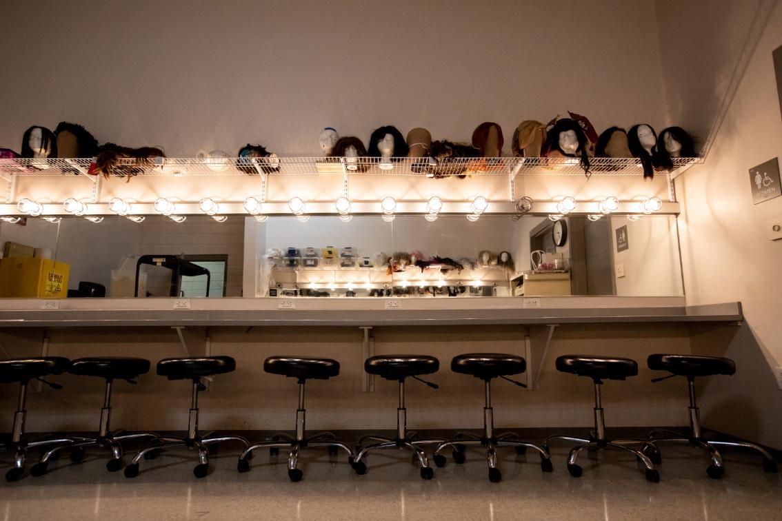 There is a large makeup area and two dressing rooms, complete with lockers and showers.