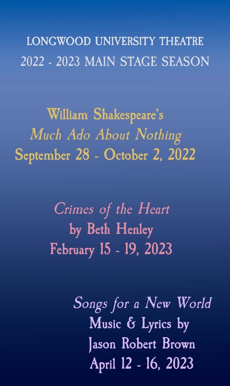 An Evening of Very Short Plays will slide into Longwood Theatre’s season in mid-February, 2022.